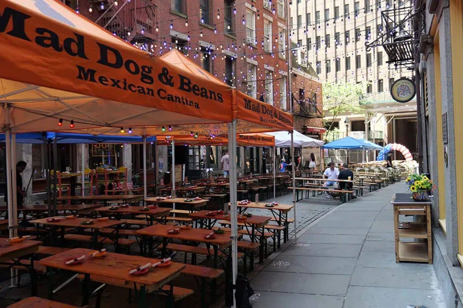 Stone Street a été créée en 1658, à l’époque où New York s’appelait encore New Amsterdam. C’est l’une des rares rues pavées de Manhattan, ce qui lui donne un charme unique. Aujourd’hui, elle est surtout connue pour ses terrasses très animées en été, parfaites pour faire une pause lors de votre séjour à New York.