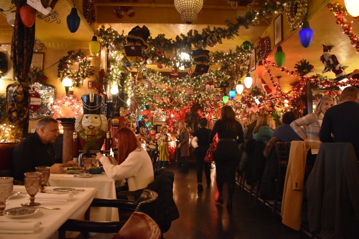 Rolf’s Bar & Restaurant est sans doute l’un des lieux les plus célèbres de New York pendant la période de Noël. Ce petit restaurant allemand du quartier de Gramercy Park (à côté de Flatiron District) est entièrement recouvert de décorations : guirlandes, boules, lumières et sapins remplissent chaque recoin. L’ambiance est magique, et les propriétaires du restaurant ont même décidé de laisser les décorations de Noël toute l’année ! Les plats sont corrects mais rien d’incroyable, on y va plutôt pour l’ambiance.